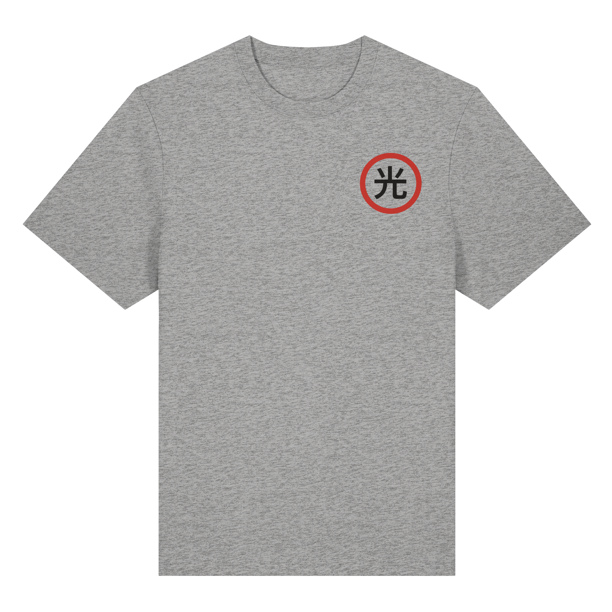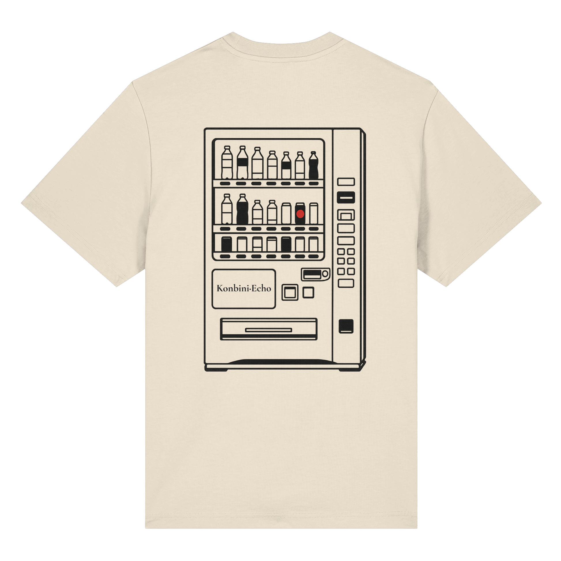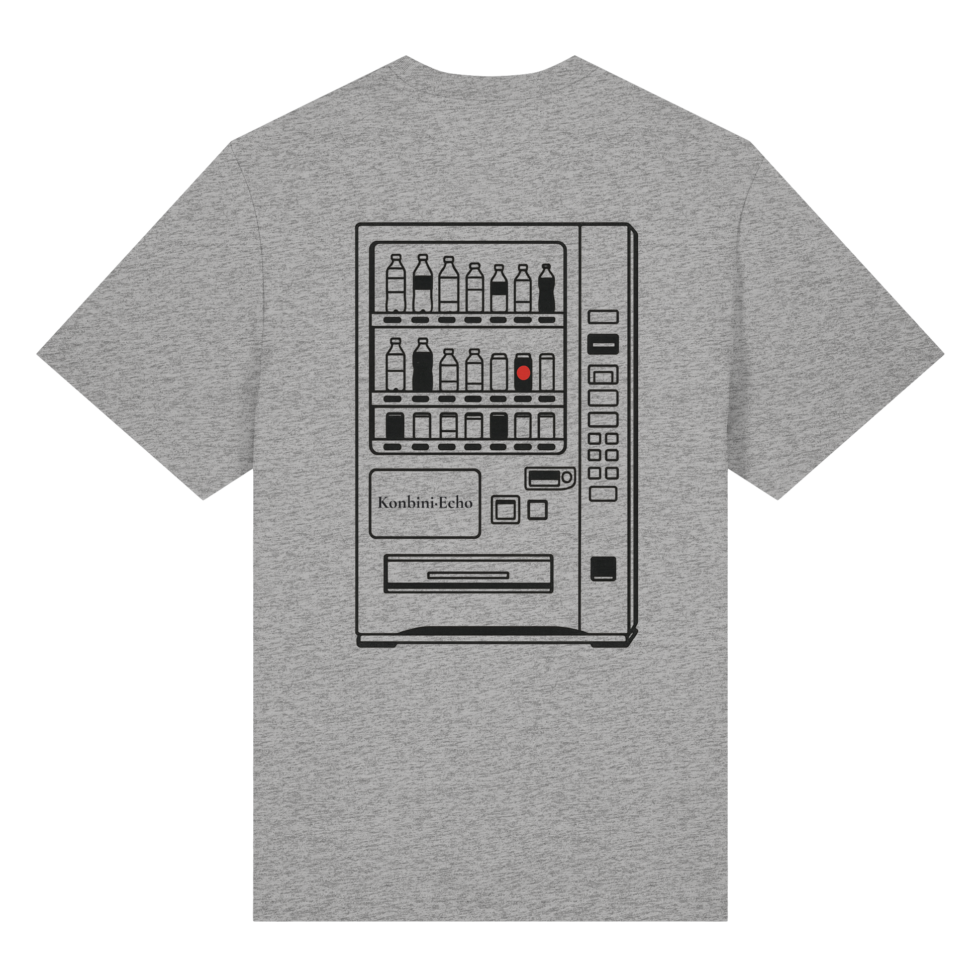 Erinnere dich an diese stillen Nächte in Japan: Das Design zeigt einen ikonisch japanischen Getränkeautomaten als Line Art mit nur einem rot leuchtenden Auswahlknopf. Minimalistisch, zurückhaltend, schnell nostalgisch. Ein Symbol für Einsamkeit, Routine, aber auch Geborgenheit im Urbanen. Das Design ist auf der Rückseite platziert wie eine stille Erinnerung, die der Mann mit sich trägt.
