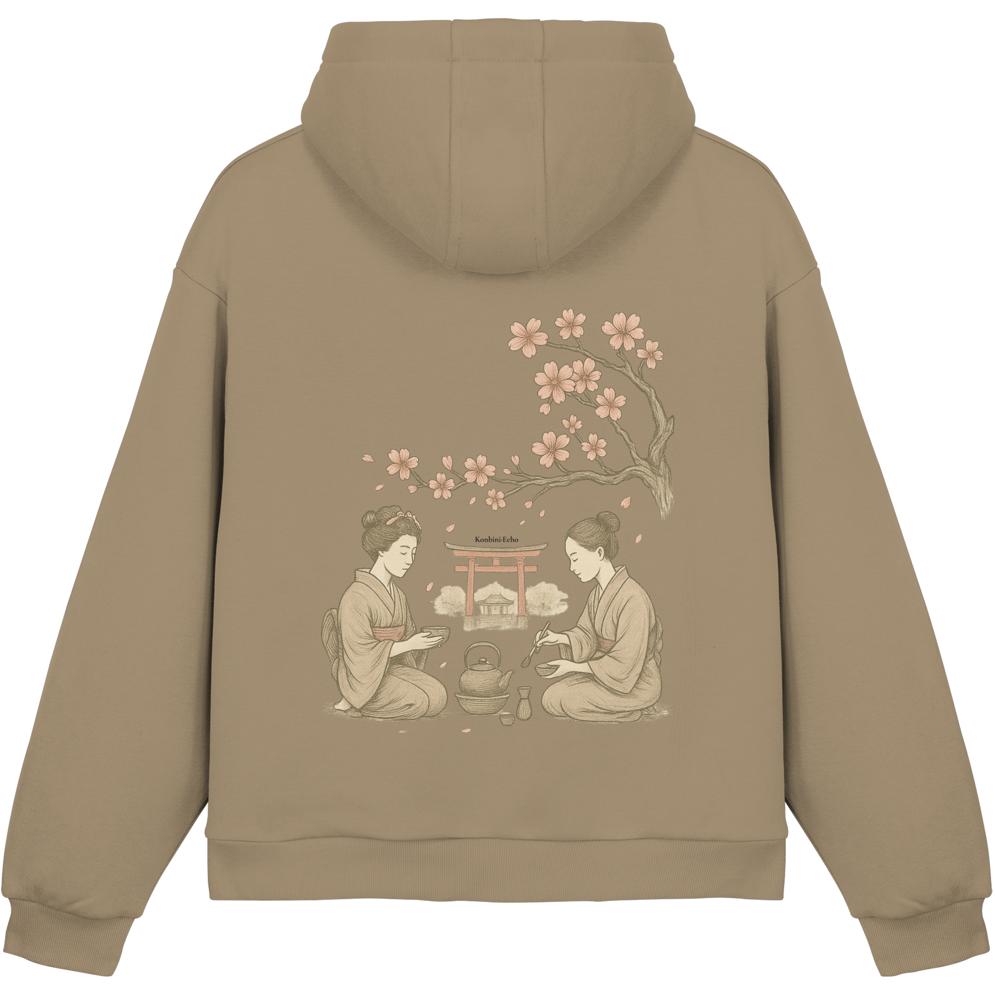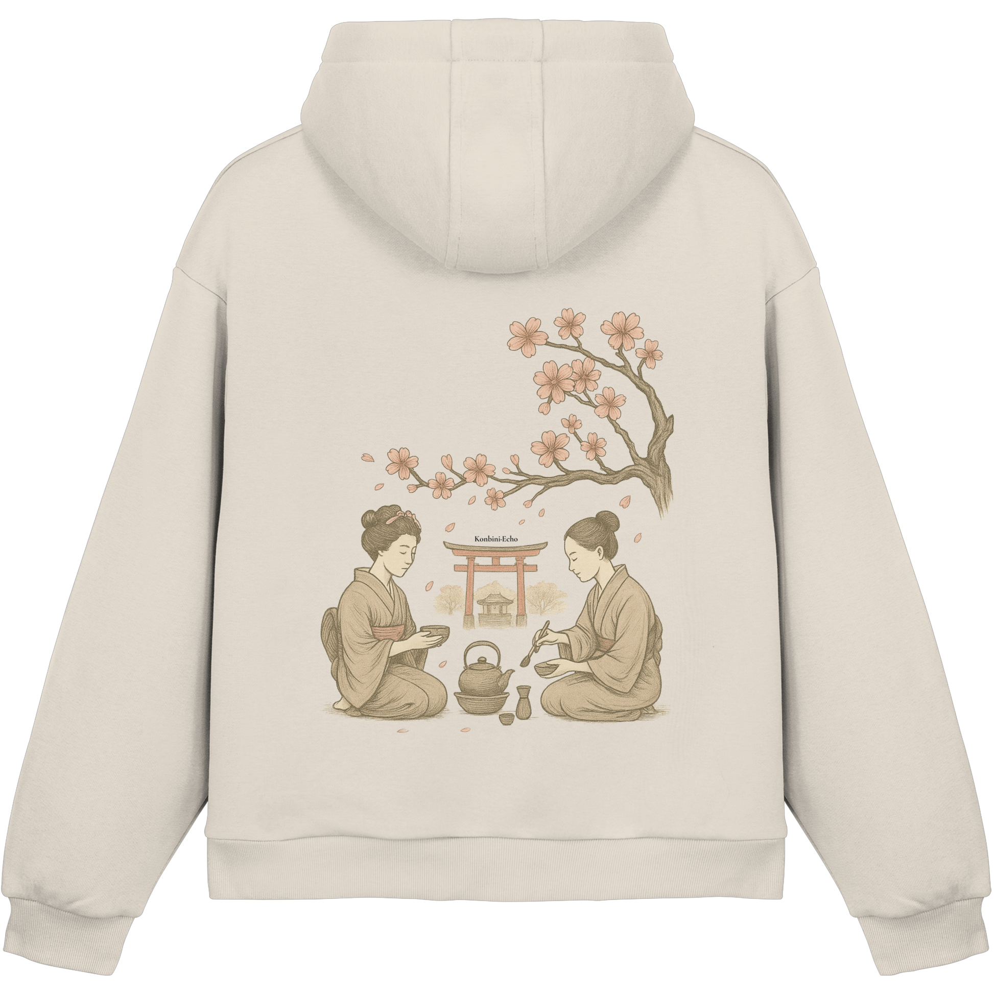 Tauche ein in die stille Schönheit der japanischen Teekultur – dezent eingefangen in einem minimalistischen Brustmotiv. Dieses Shirt kombiniert ruhige Ästhetik mit tieferer Symbolik: Zwei Teeschalen und eine Kanne, begleitet von sanften Kirschblüten. Gedruckt auf hochwertigem Stoff mit weichem Griff – ideal für alle, die klare Linien und leise Botschaften tragen wollen.